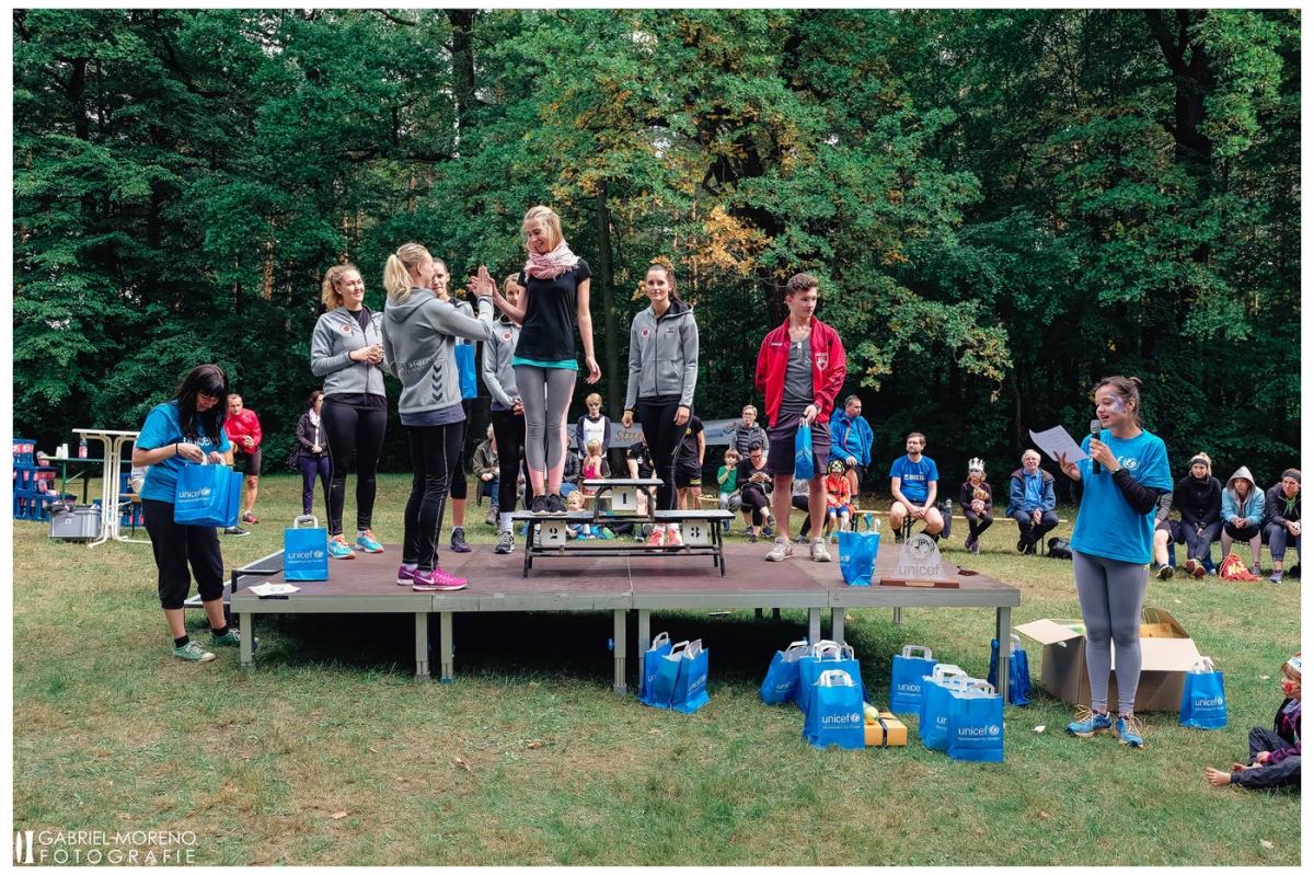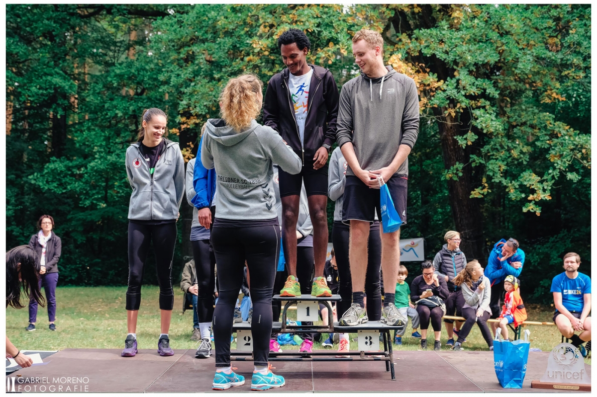 Der Lauf fand traditionell im Waldpark Blasewitz statt und wurde auch dieses Jahr wieder durch die Sächsische Staatsministerin für Soziales und Verbraucherschutz, Barbara Klepsch, als Schirmherrin unterstützt. Neuer Schirmherr war das DSC-Volleyball-Bundesliga-Team der Damen. Die Volleyballerinnen haben nicht nur im Vorfeld fleißig Werbung für uns gemacht, sondern auch am Lauftag selbst sowohl die Erwärmung als auch die Siegerehrung übernommen und sind mit einem eigenen Team mitgelaufen. „Wir sind stolz, dass mit der Unterstützung aller Läufer eine großartige Spendensumme zusammen gekommen ist. Jeder Unterstützer zählt, deshalb werden wir auch zukünftig UNICEF und den Dresdner Spendenlauf unterstützen“, sagt Sandra Zimmermann, Geschäftsführerin des DSC-Volleyball-Damen. Bei der Siegerehrung haben die Volleyballerinnen tolle Sachpreise der zahlreichen Sponsoren des Laufs übergeben, wozu bei den Erstplatzierten natürlich auch ein DSC-Fanpaket zählte.